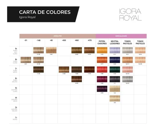 Con productos de primera calidad para cada tipo de aplicación en el salón, IGORA trae colores individualizados en una fascinante gama de tonalidades. También hay un amplio portafolio de servicios, que independientemente del requerimiento de tu cabello, permite conseguir fácilmente el look más adecuado para ti de una manera fácil.